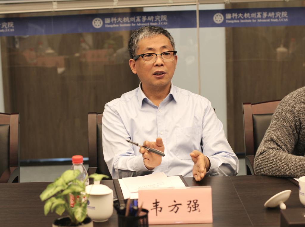在听取了杭高院关于教学科研、师资队伍、研究生培养等情况的介绍后,韦方强对杭高院目前取得的成绩表示祝贺,并就中科院重庆研究院和国科大重庆学院的情况作了简单介绍。韦方强指出,国科大重庆学院是中科院和重庆市政府依托中科院重庆研究院建立的一所新型科教创产融合发展联合体,希望通过这次交流考察,借鉴杭高院的一些有益做法和经验,助推学院加快高质量发展。