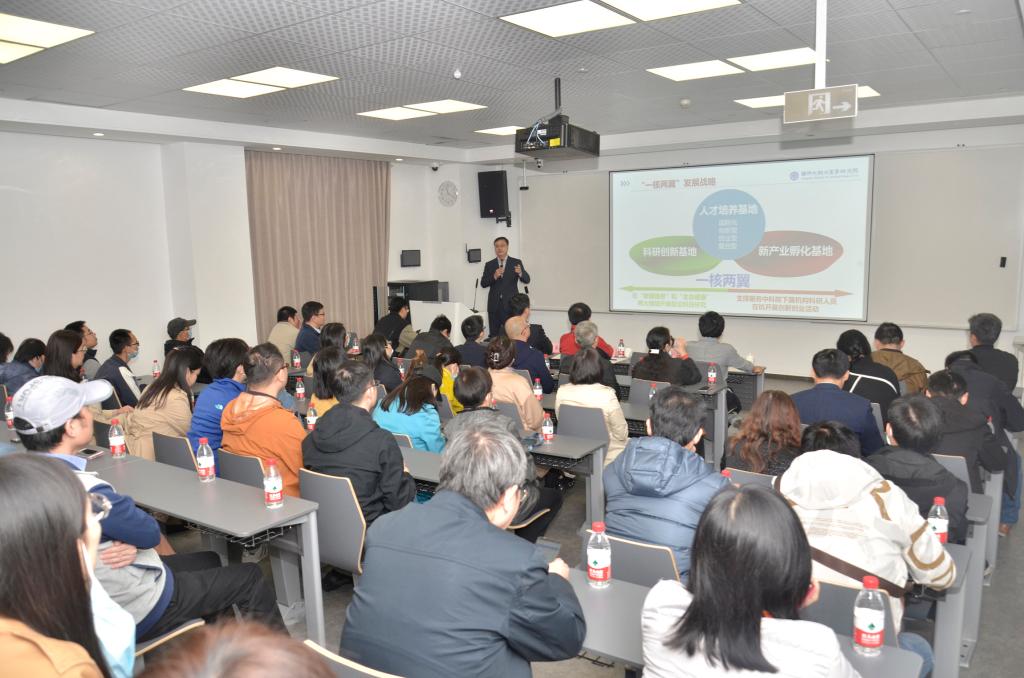 座谈交流会上,郑崇辉就杭高院目前的教学科研、师资队伍、人才培养,双创工作等情况作了介绍。郑崇辉表示,杭高院当下及未来要重点做好以下几个方面的工作:科学合理设置人才培养规模,争取三年内使在校学生人数突破千人;以十四五规划和杭州市经济社会发展目标为指引,科学设置学科和研究方向;以服务地方经济社会发展为目标,全力推动成果转移转化;在之江实验室共建中扮演重要角色。郑崇辉指出,希望中科院上海药物所能给予大力支持与协助,为做好上述工作添砖加瓦。