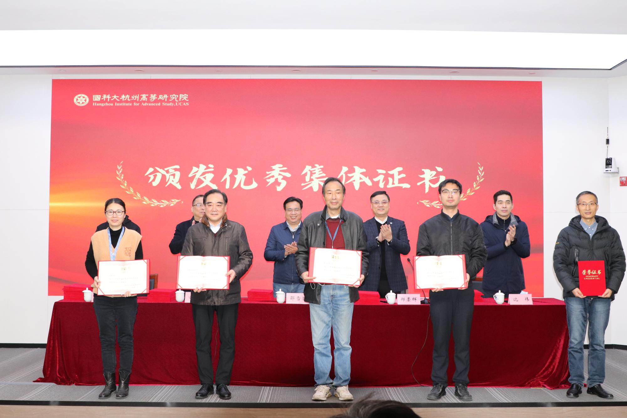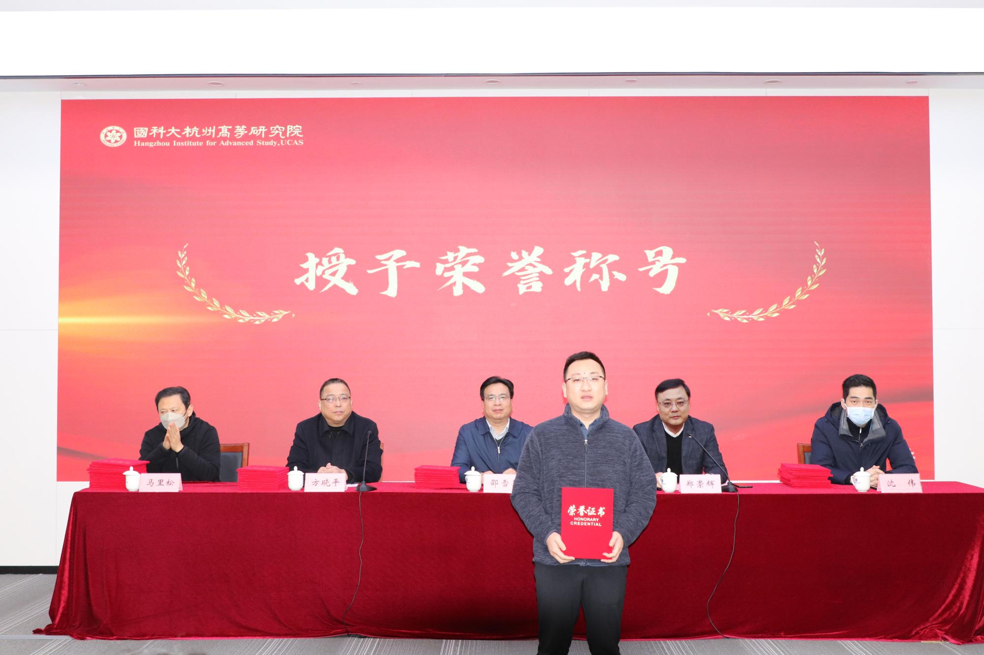 1月11日,国科大杭州高等研究院(以下简称杭高院)召开2022年度年终表彰大会,表扬先进、树立典型,示范引领、砥砺前行。杭高院党委书记邵雪荣,党委委员、常务副院长郑崇辉,党委委员、纪委书记方晓平,党委委员、副院长沈伟,原党委书记马里松出席表彰大会,院机关干部代表、各二级学院代表和优秀集体代表、优秀个人参加大会,会议由郑崇辉主持。