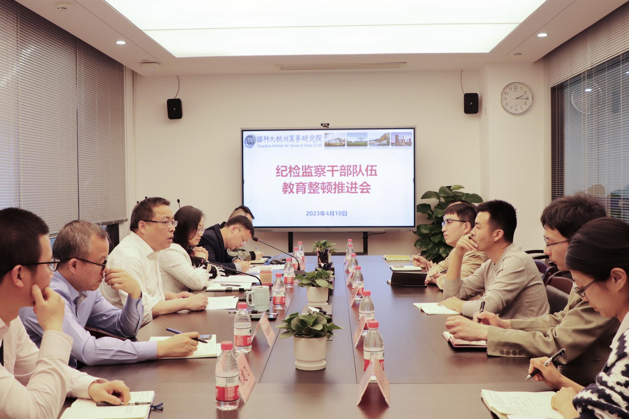 4月10日,国科大杭州高等研究院(以下简称杭高院)召开纪检监察干部队伍教育整顿工作推进会,杭高院党委委员、纪委书记方晓平出席会议并讲话。杭高院纪检监察室全体人员和各二级党组织纪检委员参加会议。