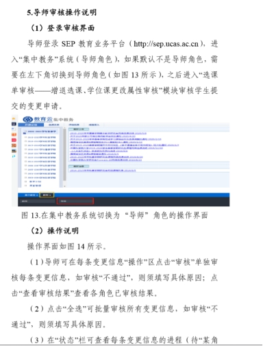研究生在选课系统内提交变更申请并在提交之后10日内依次经杭高院教务部、国科大教务部、导师审核通过后方能完成变更,超过10日未完成全流程审核或任一角色审核不通过则视为申请不通过。