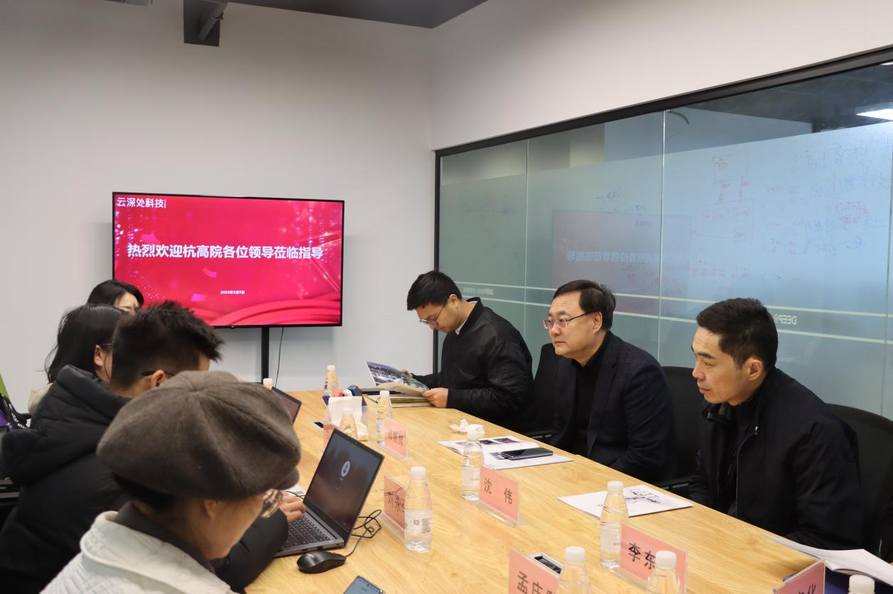 调研活动以“智能科技人才培养与产学研协同创新”为主题,双方就如何在人工智能、四足机器人等前沿领域深化校企合作,实现资源共享、优势互补,以及如何构建以企业需求为导向的人才培养模式进行了深入交流与探讨。双方一致认为,校企合作是推动科技创新和人才培养的重要途径,特别是在人工智能这样的前沿领域,需要高校的理论研究与企业的实践应用紧密结合,才能培养出既具备扎实理论基础又具有实战经验的高端复合型人才。在人才培养方面,云深处表达了期望杭高院的学生赴公司实习、实训的意向,以期学生在实际项目中提升专业技能。同时,杭高院也欢迎将云深处资深工程师纳入行业导师库,期待产业导师为学生带来一线的行业经验和实践知识。
